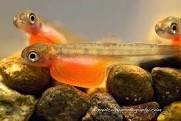 The rate of development in the eggs depends on water temperature. Eggs hatch around 530 to 610 ATU’s. Accumulated Thermal Units is calculated by adding daily water temperature in degrees celsius from date of fertilization. Emergence of fry occurs at 900 to 980 ATU. Pink salmon emerge predominantly at night, a behaviour developed to protect them from predators.A key moment for the pink salmon fry occurs when they emerge from the gravel and move to open water. The tiny fry swallow air to fill their swim bladder. This allows them to achieve neutral buoyancy in their water environment so they can manuver much more easily.